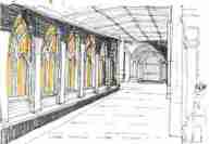 Previous ImageNext Image Durham Cathedral Cloisters (Sophie) Pen and Ink with Brush-Point Pen Size 210×140 SOLD