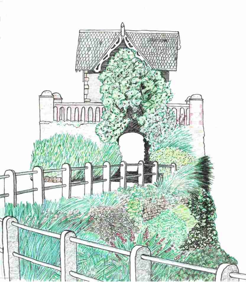 Previous ImageNext Image TITLE Gyllynvase Promenade – MEDIUM Pen, ink & coloured pencils – SIZE 180 x 210